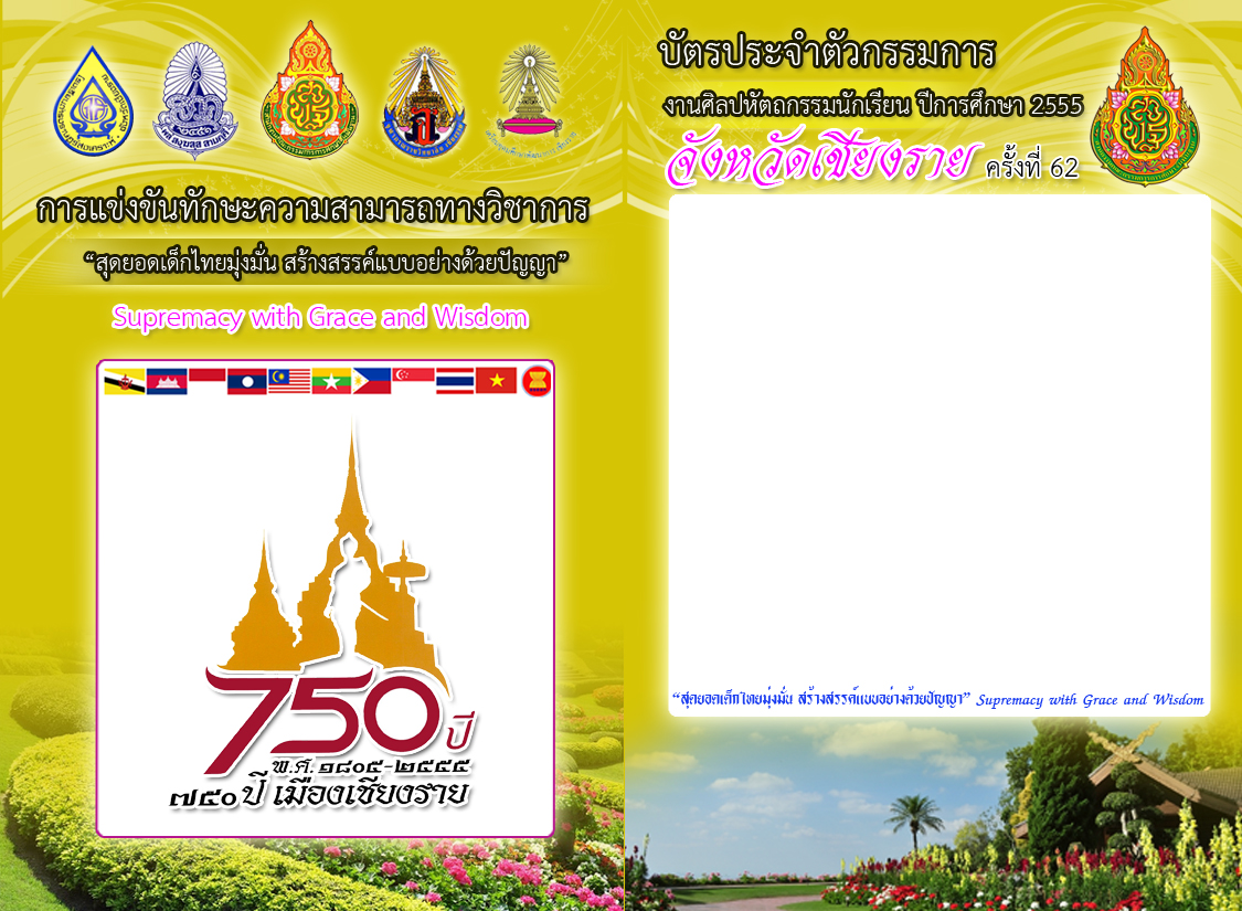 รูปแบบบัตรประจำตัว มีขนาดเท่ากับ (1125x825 pixels) ตัวอักษรควรวางรูปให้มีพื้นที่ว่างในการพิมพ์เนื้อหาส่วนที่เกี่ยวข้องกับการแข่งขัน